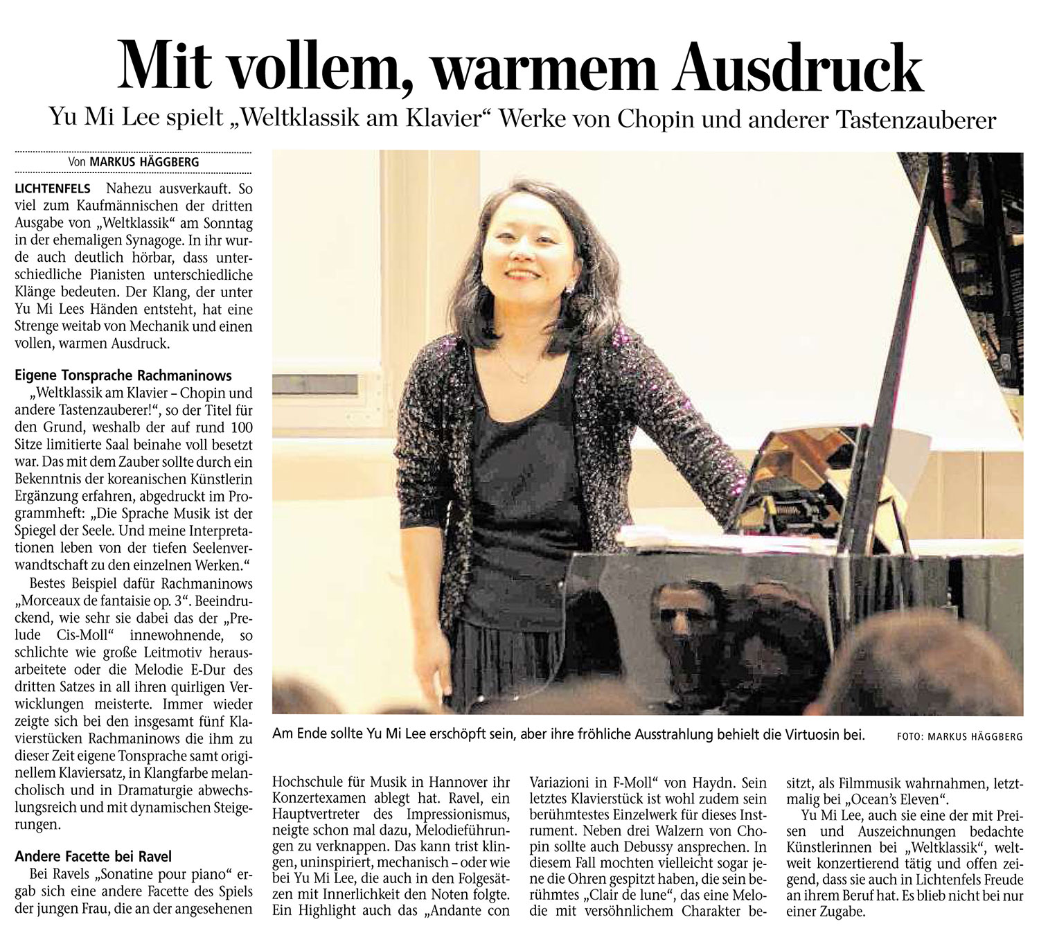 Please click on the picture in order to read the entire article:"Brilliant performing with sense of timbre and timing"